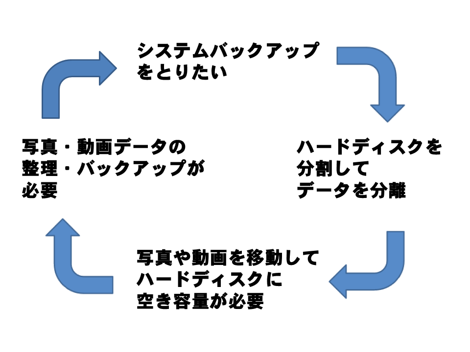 ハードディスクを分割しとけばよかったと