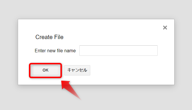 - 「Create File」ダイアログが開くので作成するファイルの名前を入力して「OK」をクリックします。