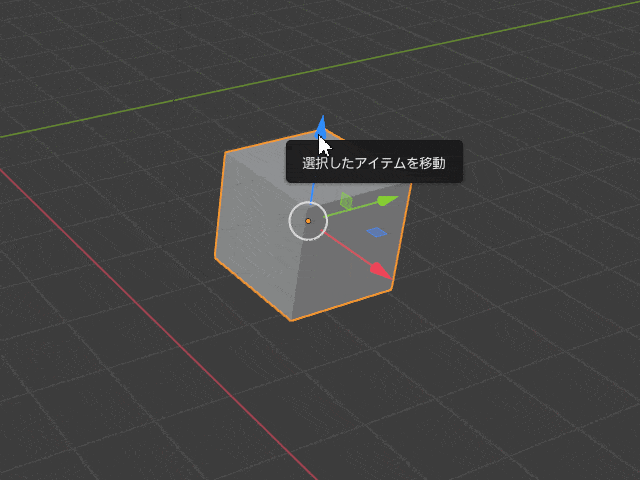軸方向への移動・変形: G or R or S キー + X or Y or Z キー移動のショートカットのあとに X , Y , Z を押すことで、指定した軸の方向へ移動させることができます。