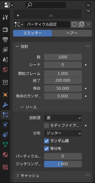 どこからどのようにパーティクルが放出されるかを設定します。